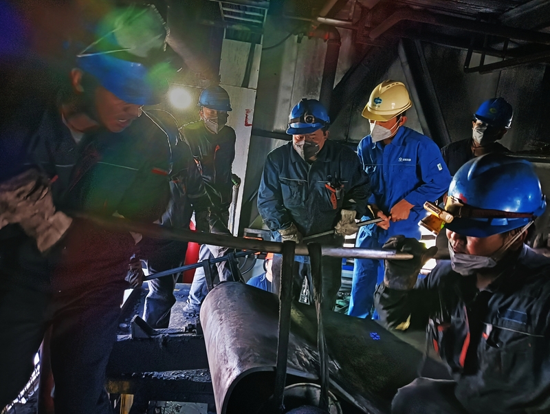 面对现场作业空间狭小、时间紧迫、施工难度大的三重挑战,运营厂团队统筹谋划、科学组织,针对空间狭小难题,采用“人力牵引+小型吊具辅助”模式,有效减少空间制约影响;在以往拆除机头电机、减速机等设备的传统工艺上进行优化,组织开展专题会,制定“不拆除电机、减速机,只拆除托辊架、滚筒进行皮带整体安装”方案,大幅简化作业流程,在以往基础上缩短了50%的时间,仅用时3.5小时便高效完成了皮带更换、带煤运行。