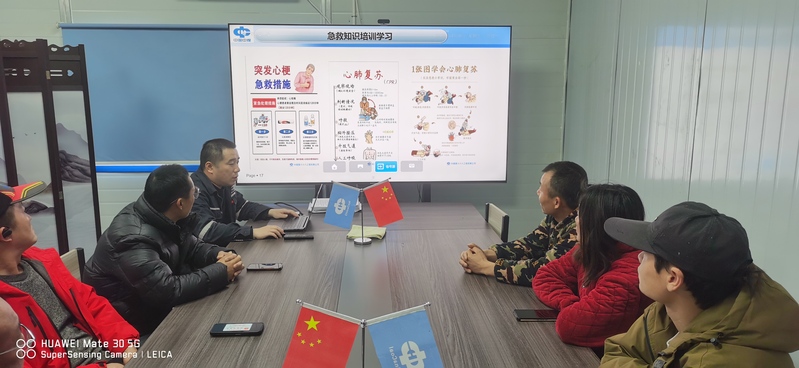 春季气温波动大、野外作业强度高,是心梗、心脑血管疾病、晕厥、中暑等健康风险的高发时段。项目部特邀驻地医院专家走进一线,围绕心梗早期识别、黄金4分钟急救、心肺复苏规范操作等内容开展专题授课。