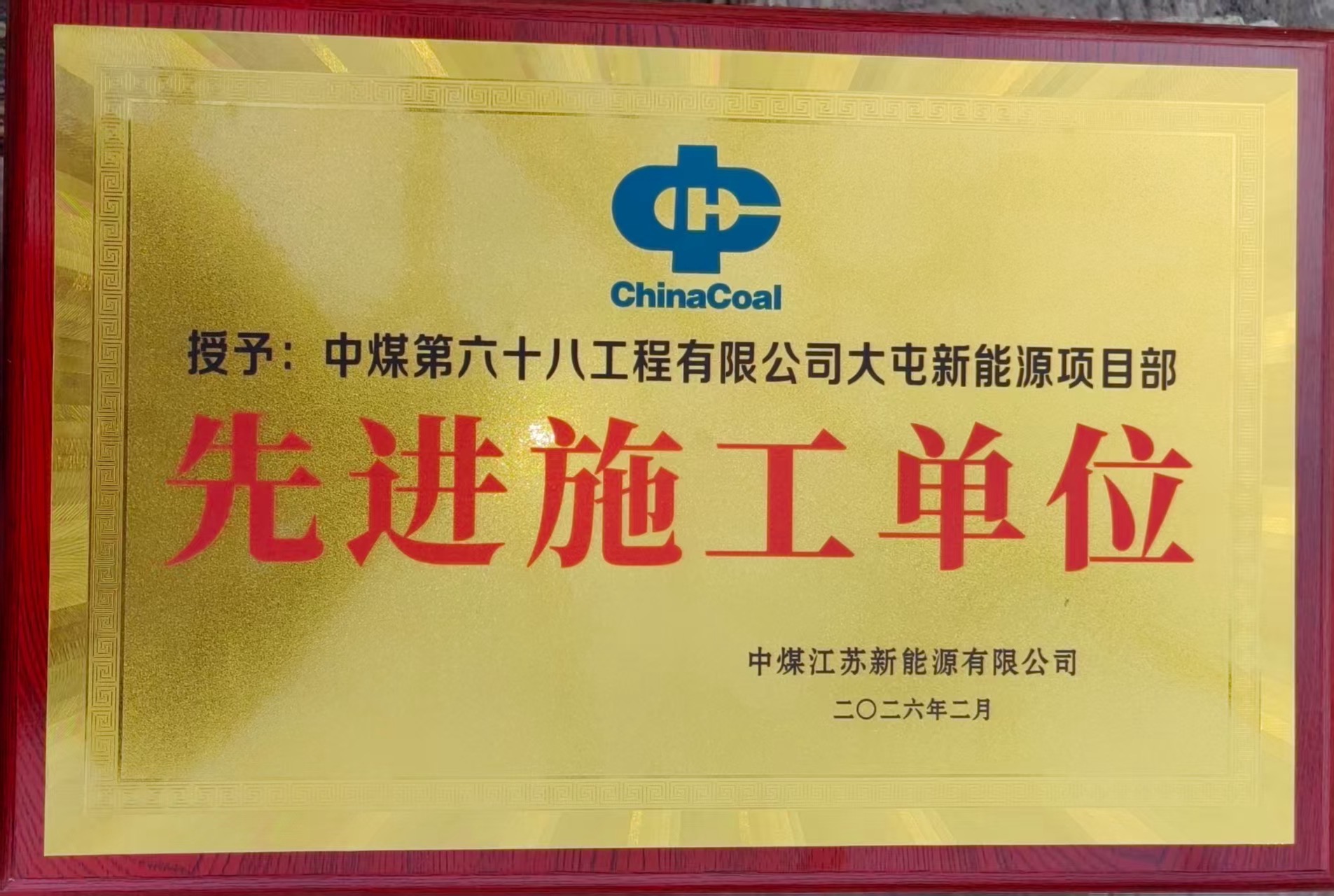近日,中煤江苏新能源有限公司授予中煤第六十八工程有限公司大屯新能源项目部“先进施工单位”称号,表彰其在沛县光伏发电项目建设中的突出表现。