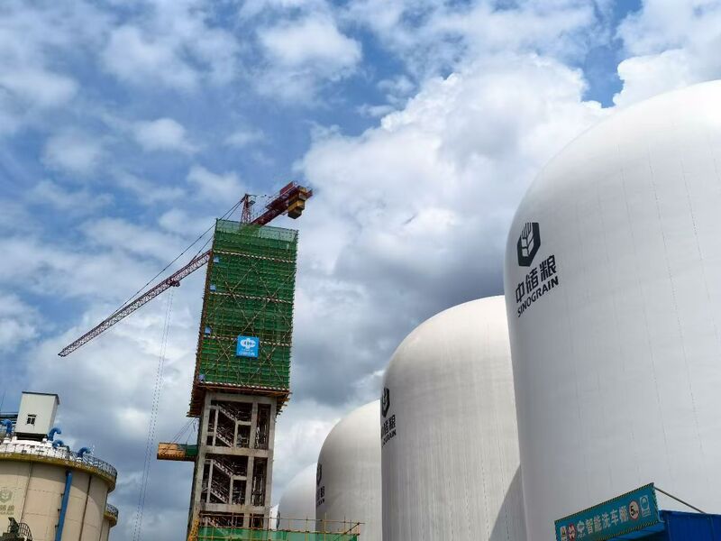 工人们说不怕热,因为我们用汗水浇灌着希望!