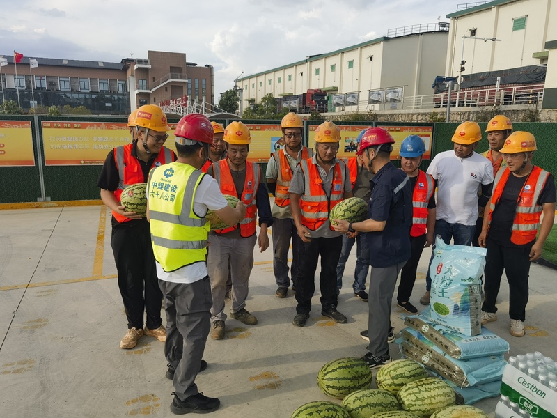 处暑已至,但长沙高温依旧持续攀升,炙热仍笼罩坚守在一线的劳动者,为切实保障职工权益,传递企业关怀,保障广大员工身体健康和公司安全生产持续稳定,公司工会组织气膜科技公司工会在长沙中储粮项目开展2025“送清凉”迎战“秋老虎”活动,为坚守在一线、奋斗在高温下的一线员工送去慰问与关怀。