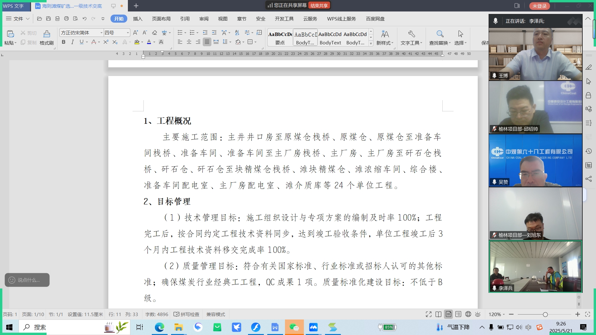 近日,吴赞通过视频会议组织对海则滩选煤厂项目开展了一级技术交底,榆林项目部班子成员及管理人员、科技创新部相关人员参加会议。