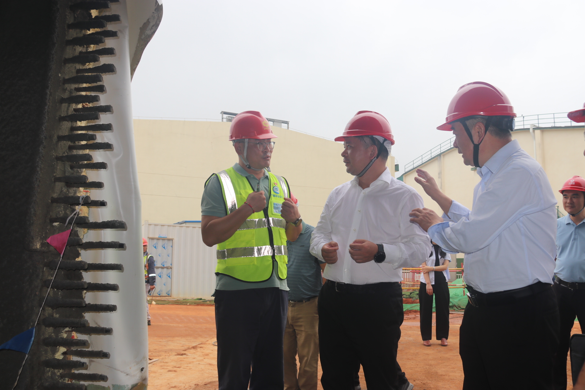 喻志军一行首先听取了项目负责人汇报的项目简介、气膜粮仓工艺以及工程业绩等情况,着重询问了气膜钢筋混凝土结构在粮食仓储领域的施工、造价、工艺以及其优越性和先进性等指标。随后在引导下,对施工现场进行了观摩,对项目施工的安全管理、生产组织及质量把控给予了充分认可。最后,调研观摩组人员与项目人员就气膜钢筋混凝土结构技术今后在粮储、物资储备以及新农村建设等领域的发展优势进行了探讨并交流了意见。