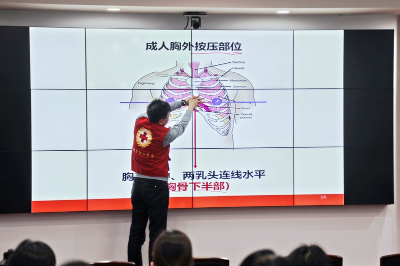 本次培训邀请了市红十字会的老师进行授课。培训内容理论与实操并重,讲师首先通过生动的案例和系统授课,讲解了心肺复苏的原理、操作流程、AED的正确使用方法,以及判断心跳呼吸骤停的关键要点。讲师特别强调了“黄金4分钟”的重要性,让大家深刻认识到及时、有效的现场救护对挽救生命的决定性作用。