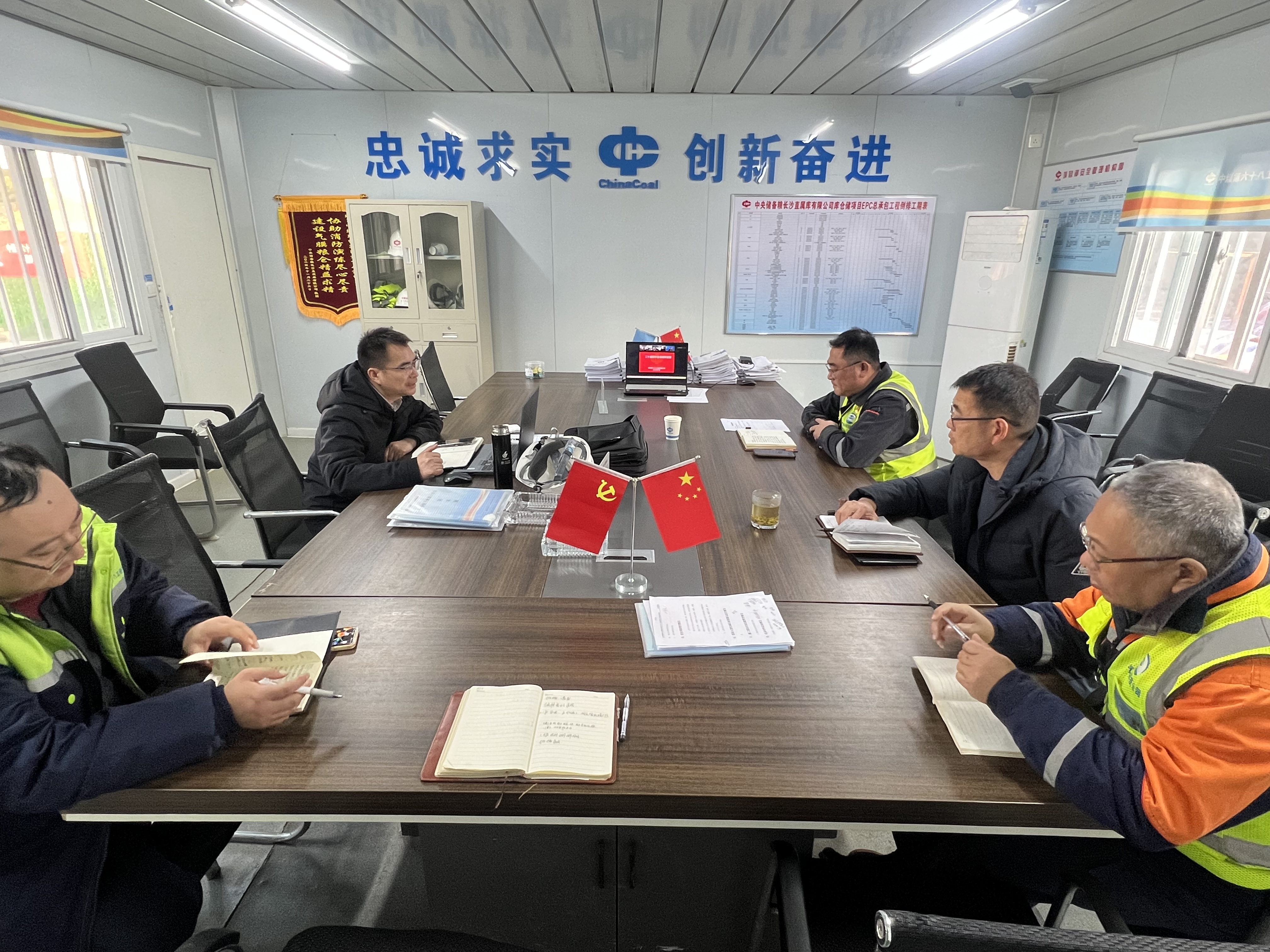 1月11日,公司总工程师吴赞来到气膜科技公司长沙中储粮工地检查指导工作;详细了解了现场总图工程进度及收尾工作的开展情况后,深入现场对仓壁二次结构、钢结构以及提升塔装饰装修等工作的质量管控情况、细部做法落实进行了实体检查。吴赞对项目下一步工作提出四点要求:一是要严把年终岁尾安全质量“双关口”,按照计划方案落实安全、质量、生产等各项工作,确保项目“大履约”;二是持续通过“复盘+创新”工作机制做好工艺技术革新、施工经验总结工作;三是要从生产资源保障、安全生产管理、进度推进以及施工资料整理汇编等多方面做好该项目工程收尾阶段各项工作的推进。