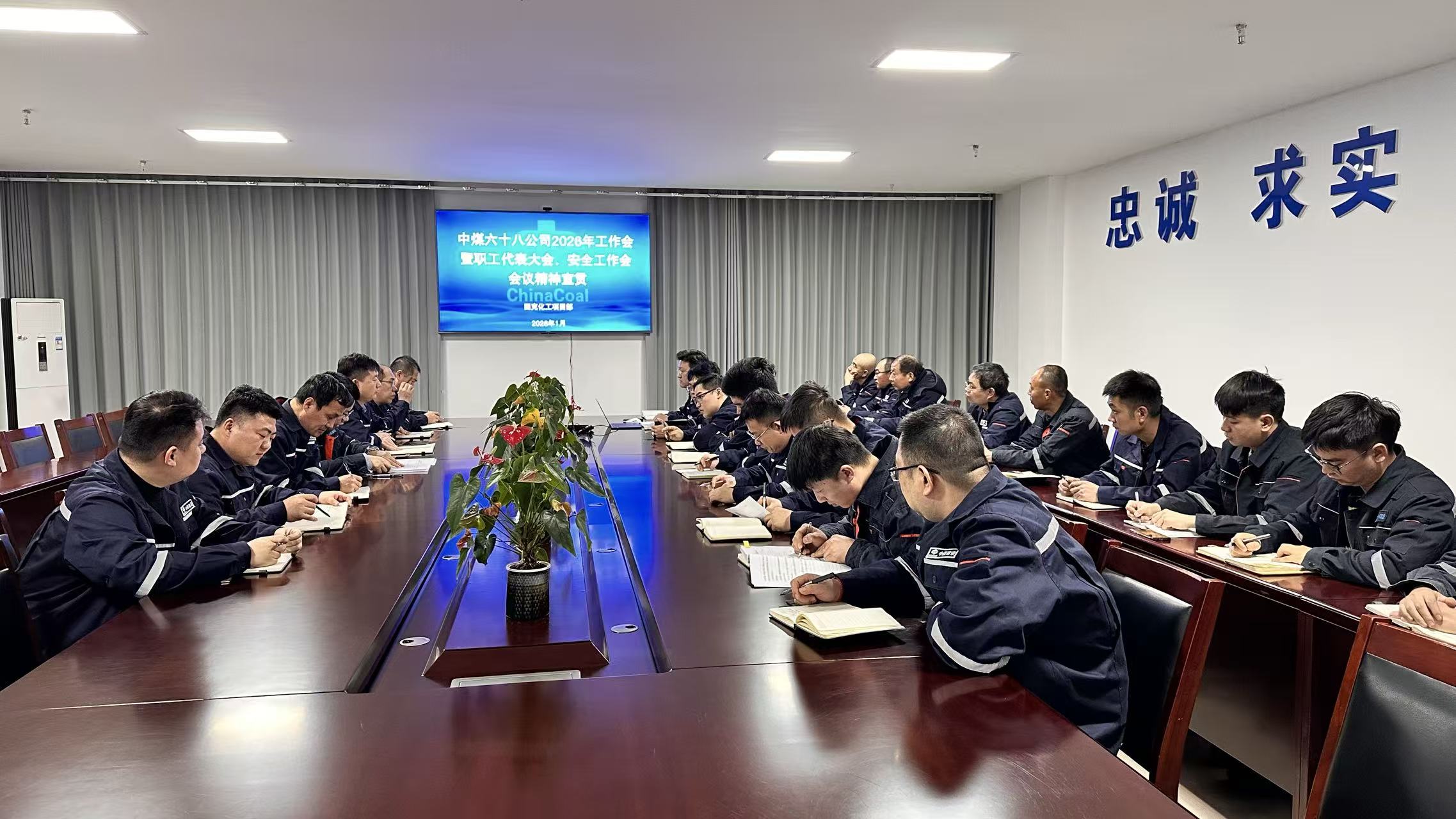 1月27日,中煤六十八公司2026年工作会暨职代会顺利召开,会议总结2025年党建、行政、安全、经营四大重点工作,精准部署2026年工作思路与任务,为公司高质量发展锚定方向、明晰路径。为迅速吃透会议精神,1月28日,中天合创项目部第一时间组织全体职工开展专题学习,推动会议精神落地生根。