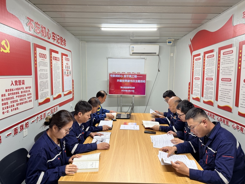 第31个世界读书日来临之际,为启动“学习型党支部”建设工作,充分发挥“红擎铁军-品牌党支部”引领作用,4月23日,宝山项目部党支部组织全体党员、入党积极分子及一线职工代表,开展“书香润初心 实干筑工程”主题活动,推动阅读学习与各岗位实际深度融合,为“学习型党支部”建设筑牢初始根基。